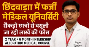 साल का एलोपैथिक कोर्स और 6 माह की इंटर्नशिप का लालच देकर चलाया जा रहा फर्जी “मेडिकल कॉलेज” — छात्रों को दिए जा रहे आई कार्ड, यूनिफॉर्म और क्लासेस से बनाई जा रही असली जैसी पहचान सतपुड़ा एक्सप्रेस छिंदवाड़ा (मध्यप्रदेश):छिंदवाड़ा जिले में एक बड़ा शिक्षा घोटाला सामने आया है। जानकारी के अनुसार जिले में एक … Continue reading छिंदवाड़ा में फर्जी मेडिकल यूनिवर्सिटी का खुलासा: सैकड़ों छात्रों से वसूली जा रही लाखों की फीस, ‘प्रधानमंत्री अप्रूव्ड स्कीम’ के नाम पर ठगी