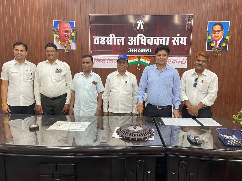 सतपुड़ा एक्सप्रेस अमरवाड़ा-तहसील अधिवक्ता संघ अमरवाड़ा के चुनाव में निर्वाचन अधिकारी हरिप्रसाद कटारे रवि पालीवाल गज्जू डेहरिया ने जानकारी देकर बताया कि अध्यक्ष पद हेतु एच एस रिजवी, राजेंद्र कुमार नेमा, मनीष नेमा, महेश कुमार बेलवंशी उपाध्यक्ष पद हेतु जगदीश वर्मा, प्रेम कुमार राय, कार्यकारिणी सदस्य क्रमांक एक पद हेतु श्रीमती ललिता सिंगारे एवं श्रीमती नूपुर विश्वकर्मा क्रमांक 3 के लिए रामेश्वर प्रसाद वर्मा एवं बलराज वर्मा क्रमांक 4 हेतु प्रदीप वर्मा एवं लोकेश सक्सेना 6 के लिए अशोक डेहरिया एवं रामचरण डेहरिया के द्वारा नाम निर्देशन पत्र जमा किये गए।