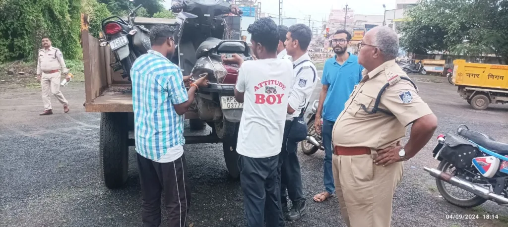 छिंदवाड़ा।यातायात व्यवस्था के सुदृढीकरण हेतु पुलिस अधीक्षक महोदय के निर्देशन मे नगर पालिक निगम छिंदवाड़ा एवं यातायात पुलिस की संयुक्त कार्यवाही के अंतर्गत क्रेन वाहन ट्रेक्टर वाहन के साथ कार्यवाही की गई स्थानीय गर्ल्स कालेज के सामने फव्वारा चौंक सड़क के किनारे लगी ठिलिया अस्थायी दुकानो को नगर निगम के अमले द्वारा हटाया गया तथा रेल्वे स्टेशन के सामने नो पार्किंग मे अव्यवस्थित रूप से खड़े वाहनो को हटाकर 04 मोटर सायकल एवं जिला अस्पताल गेट नं.02 के सामने खड़े 05 वाहन चालक कुल 09 वाहन चालकों के विरूद्ध वैधानिक कार्यवाही की गई साथ ही नगर निगम द्वारा वाहन चालको से टोइंग शुल्क वसूला गया सड़क मार्ग के किनारे संचालित व्यवसायिक प्रतिष्ठान विशेषकर शैक्षणिक, चिकित्स्कीय, बैंकिंग संस्थान संचालको को भविष्य मे मार्ग पर नो पार्किंग मे वाहन न खड़ा कराने हेतु समझाइस दी गई। इस कार्यवाही में उप पुलिस अधीक्षक यातायात, थाना प्रभारी यातायात व यातायात स्टाफ तथा नगर पालिक निगम छिंदवाड़ा का अमला उपस्थित रहा। उपरोक्तानुसार कार्यवाही प्रतिदिवस की जावेगी अतः आमजनो से अपील है कि सुगम /सुचारु/सुरक्षितयातायात व्यवस्था में आवश्यक सहयोग प्रदान करने का कष्ट करे।