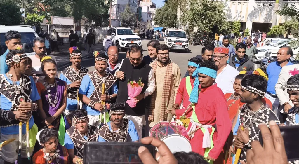 कलेक्टर कार्यालय परिसर में आदिवासी परंपरा के साथ हुआ स्वागत सत्कार