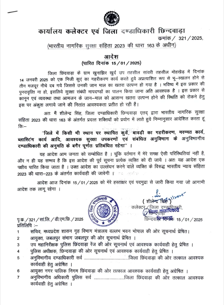 छिंदवाड़ा कलेक्टर ने किया प्रतिबंधात्मक आदेश जारी