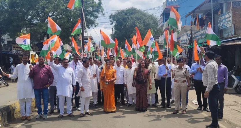 सतपुड़ा एक्सप्रेस अमरवाड़ा:उत्कृष्ट विद्यालय अमरवाड़ा से यात्रा मुख्य मार्गों से होते हुए जय स्तंभ चौक गंज बाजार में पहुंचकर संपन्न हुई विशाल तिरंगा यात्रा जिसमें मुख्य रूप से अमरवाड़ा विधायक राजा कमलेश प्रताप शाह ने भाग लिया उनके साथ अन्य जनप्रतिनिधिगण, सामाजिक संगठन एवं समस्त विभागों के अधिकारी कर्मचारियों और सभी शासकीय एवं अर्धशासकीय विद्यालयों के हजारों की संख्या में छात्र-छात्राओं ने देश भक्ति के नारे जय घोष के साथ तिरंगा यात्रा की शान बढ़ाई