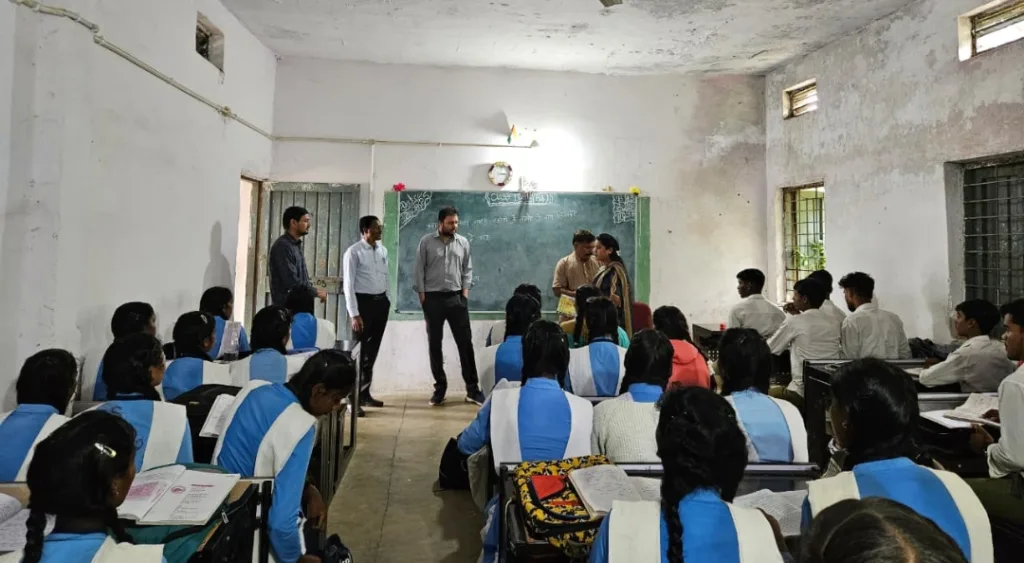 हायर सेकेंडरी स्कूल घोघरी में कक्षा 12वीं के बच्चों के साथ चर्चा