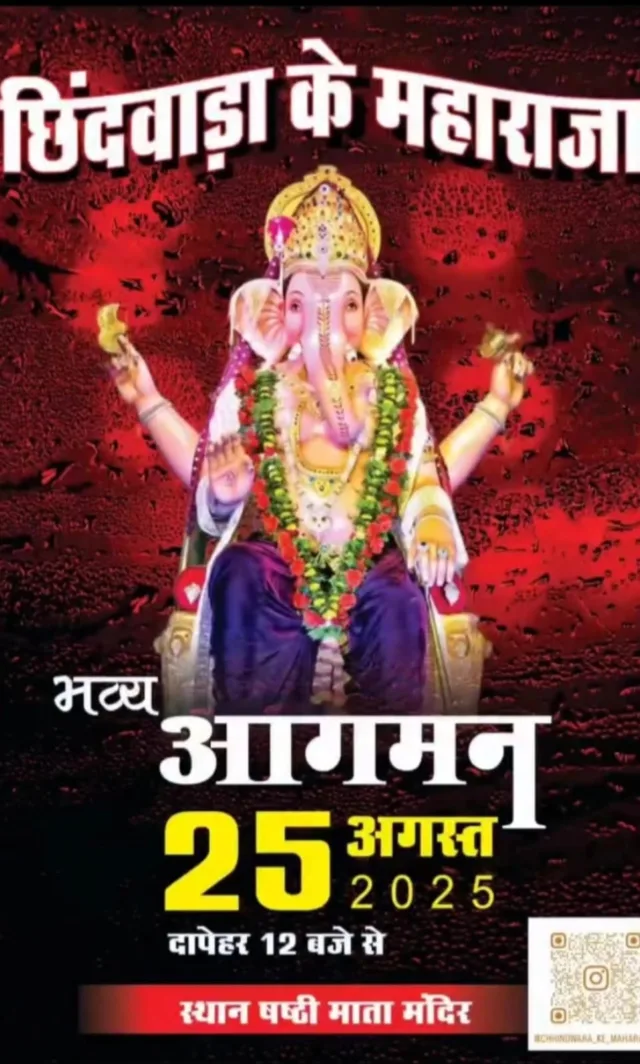 भव्य नगर आगमन और स्थापना कार्यक्रम25 अगस्त : महाराजा का भव्य नगर आगमन पष्ठी माता मंदिर से शोभायात्रा और बैंड बाजों के साथ होगा।