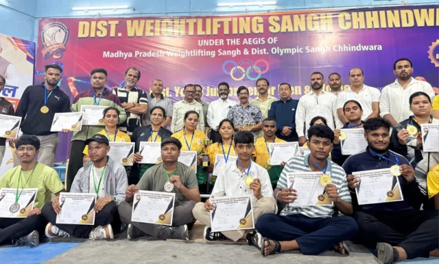 सतपुड़ा एक्सप्रेस छिंदवाड़ा।जिला वेट लिफ्टिंग संघ द्वारा आयोजित जिला स्तरीय यूथ, जूनियर एवं सीनियर महिला–पुरुष वेट लिफ्टिंग चैंपियनशिप का विजेता, उपविजेता खिलाड़यों को मैडल,सर्टिफिकेट एवं ट्राफी प्रदान भव्यता से समापन हुआ ।