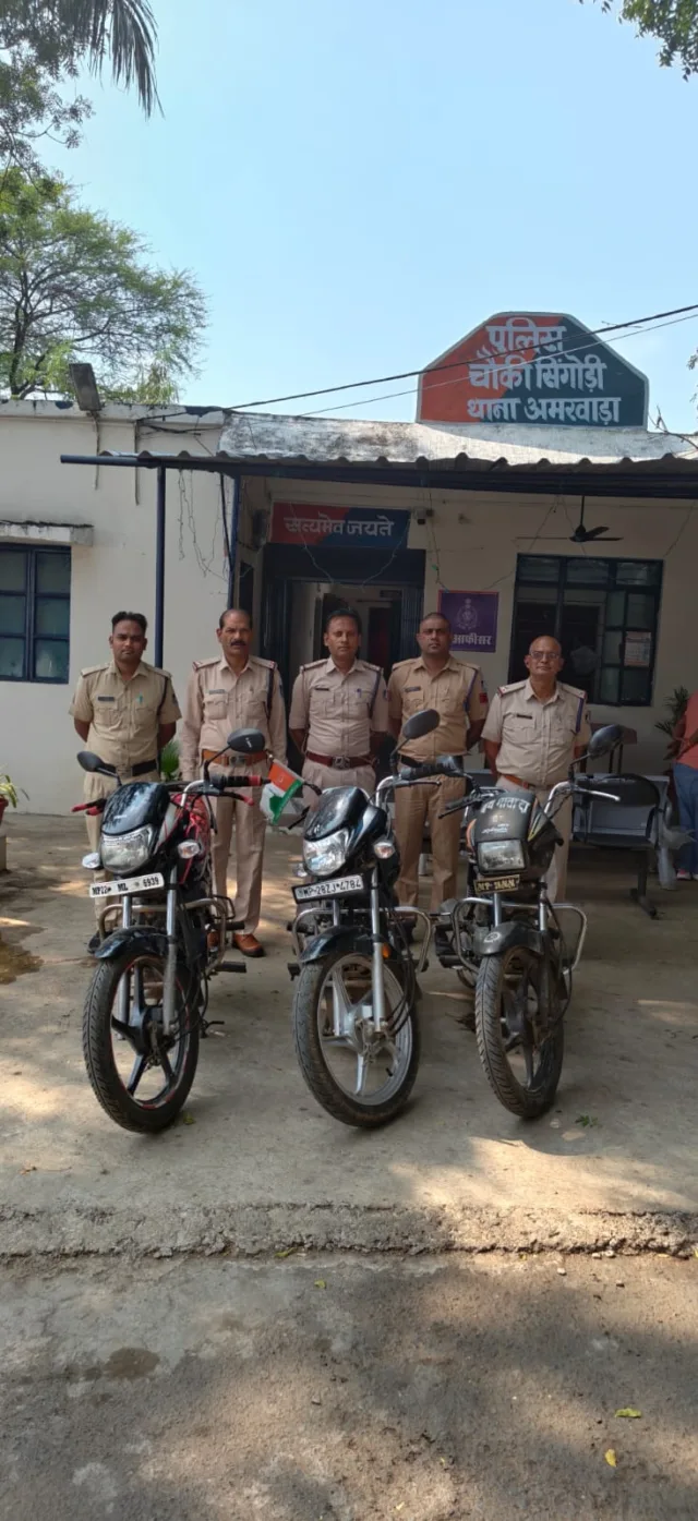 जप्तशुद मशरुका – (1) मोटरसाइकिल क्र MP 28 MM 9166, (2) मोटरसाइकिल क्र MP 28 ZJ 4784 (3) मोटरसाइकिल क्र MP 22ML6939 कुल कीमती – करीबन 250000/- रुपये