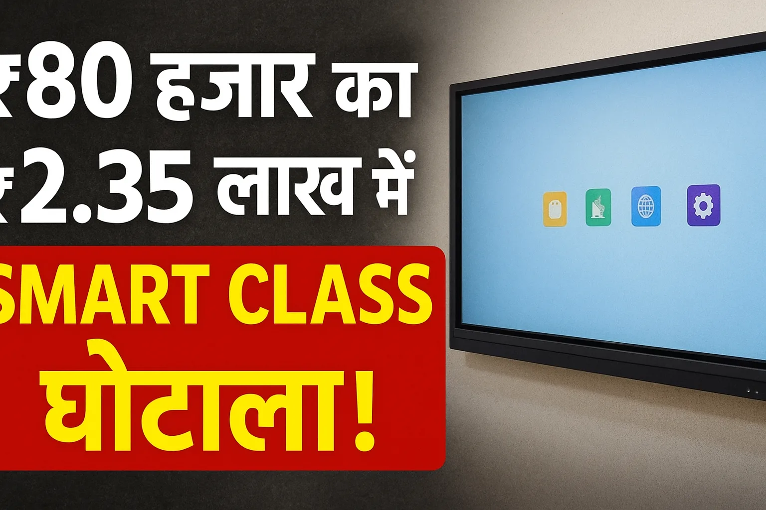 ऑनलाइन और मार्केट रेट के अनुसार, एक स्मार्ट क्लास डिजिटल बोर्ड की कीमत लगभग ₹80,000 है, जबकि उसी समान को ₹2,35,000 की दर से स्कूलों में सप्लाई किया गया है।—