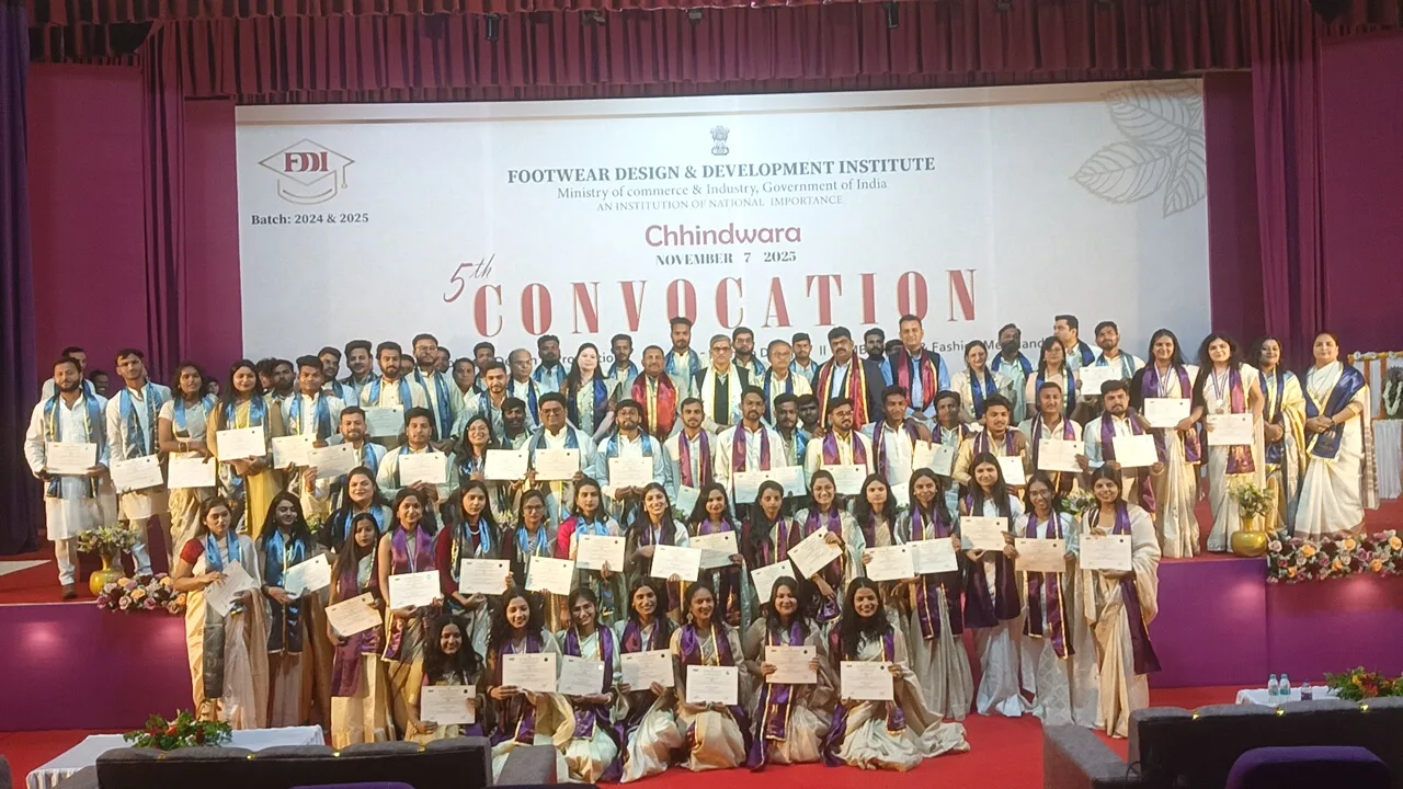 सतपुड़ा एक्सप्रेस छिंदवाड़ा/07 नवंबर 2025/ फुटवियर डिज़ाइन एन्ड डेवलपमेंट इंस्टीट्यूट छिंदवाड़ा, जो भारत सरकार के वाणिज्य एवं उद्योग मंत्रालय के अंतर्गत एक राष्ट्रीय महत्व का संस्थान है, यहाँ आज 5वां दीक्षांत समारोह का आयोजन किया गया, जिसके अंतर्गत सत्र 2024 एवं 2025 में उतीर्ण स्नातक पाठ्यक्रम फैशन डिजाईन एवं फुटवियर डिजाईन एवं स्नातोकत्तर पाठ्यक्रम एमबीए रिटेल एंड फैशन मर्चेंटडाइसिंग के 107 विद्यार्थियों को दीक्षांत समारोह के कार्यक्रम में उपाधि प्रदान की गई।