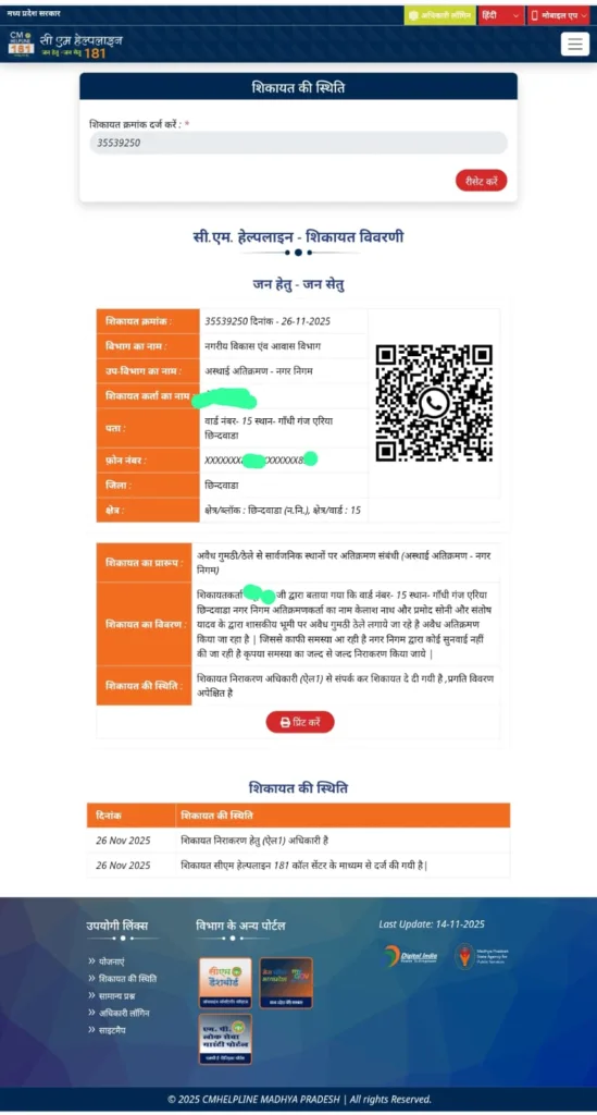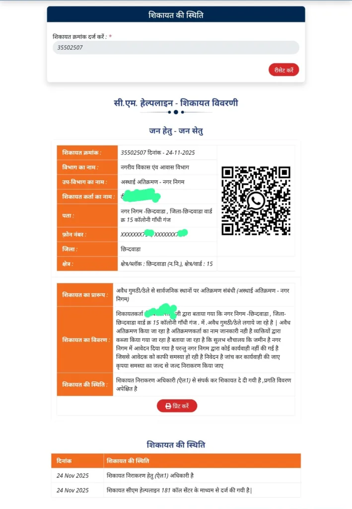 शिकायतों के बावजूद कार्रवाई शून्य स्थानीय रहवासियों ने करीब 15 दिन पहले सीएम हेल्पलाइन सहित नगर निगम प्रशासन को इस अवैध कब्जे की शिकायत की थी। इसके बावजूद आज तक कोई प्रभावी कार्रवाई नहीं हुई।रहवासियों का आरोप है कि कुछ अधिकारियों की लापरवाही, रिश्वतखोरी और कुछ स्थानीय नेताओं की सिफारिश के चलते कब्जाधारियों के हौसले बुलंद हैं।
