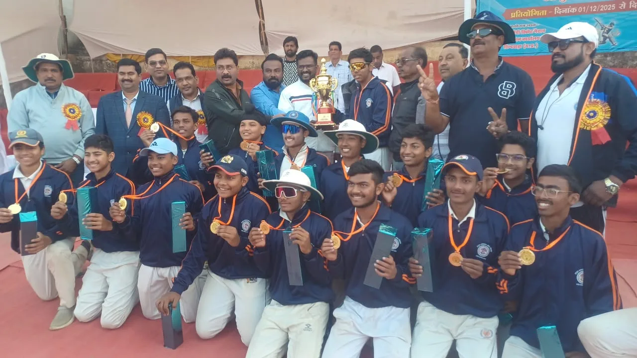 सतपुड़ा एक्सप्रेस छिंदवाड़ा।लोक शिक्षण संचालनालय भोपाल के निर्देशानुसार स्कूल शिक्षा विभाग छिंदवाड़ा द्वारा कलेक्टर श्री हरेंद्र नारायण जी के संरक्षण में विगत 5 दिनों से संचालित हो रही मध्य प्रदेश राज्यस्तरीय शालेय क्रिकेट प्रतियोगिता का समापन पुरस्कार वितरण के साथशुक्ला ग्राउंड में किया गया। इस अवसर पर महापौर विक्रम आहाके, धीरज राऊत, कार्तिक वानखेडे ,अभिषेक वर्मा, बंटी सक्सेना,फील्ड ऑफिसर कादिर खान,डी ई ओ जीएस बघेल ,जिला खेल अधिकारी प्रताप इनवाती ,प्राचार्य विद्या भूमि सहित विभिन्न संभागों के जनरल मैनेजर ,कोच ,खिलाड़ी व स्थानीय संस्थाओं के प्राचार्य विशेष रूप से उपस्थित रहे।
