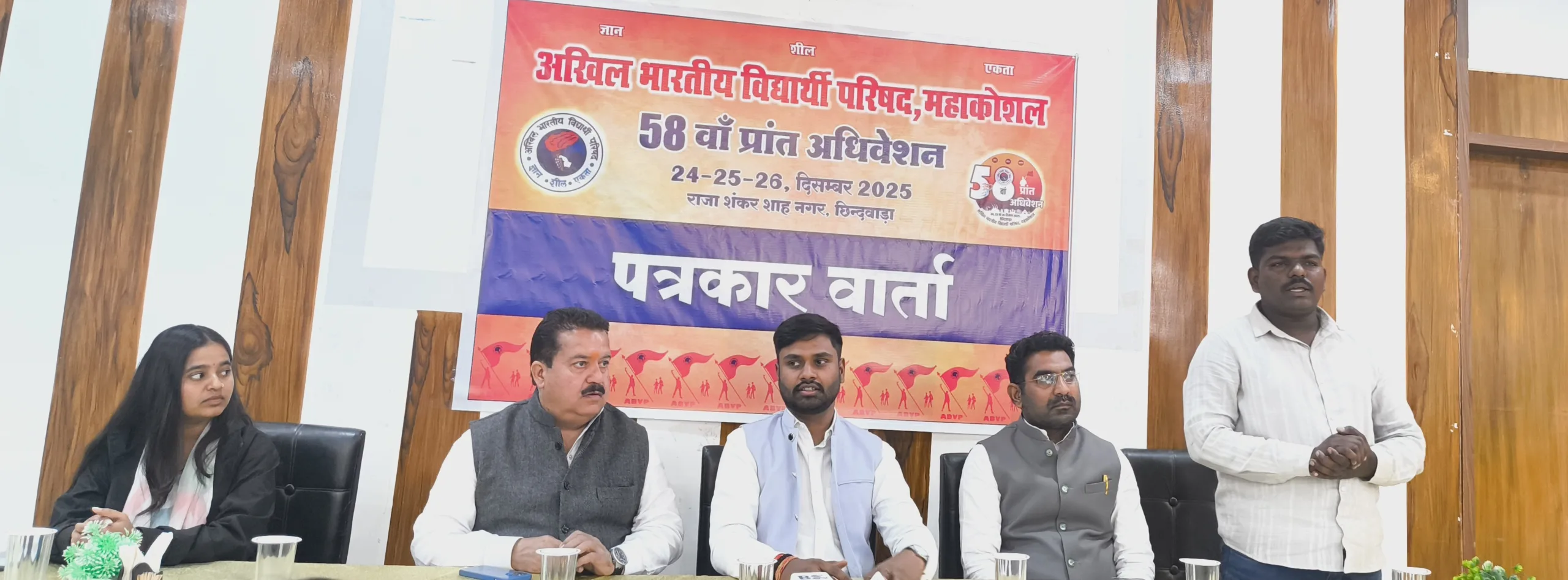 प्रेस वार्ता को संबोधित करते हुए अभाविप के प्रांत मंत्री माखन शर्मा ने बताया की हम सभी के लिए अत्यंत हर्ष का विषय है कि लम्बी अवधी के बाद विश्व के सबसे बड़े छात्र संगठन अखिल भारतीय विद्यार्थी परिषद के इसपरंपरागत प्रांत अधिवेशन का आयोजन ऐतिहासिक, धार्मिक, औद्योगिक एवं जनजाति गौरव का महत्वता रखने वाले छिंदवाड़ा में होने जा रहा है। अभाविप का 58 वॉ प्रांत अधिवेशन दिनाक 24 से 26 दिसंबर 2025 को छिंदवाड़ा के राजा शंकर शाह नगर में आयोजित होने जा रहा हैं, जिसमें प्रांत के 27 जिलों से 550 से अधिक छात्र-छात्राएं एवं प्राध्यापक सहभागी होंगे। श्री शर्मा ने बताया कि अधिवेशन के निमित एक नगर बसाया गया जिसका नाम महान स्वतंत्रता सेनानी राजा शंकर शाह जी के नाम पर सभागार एवं स्वतंत्रता संग्राम सेनानी बादल भोई जी के नाम पर प्रदर्शनी का नामकरण कर उनका पुण्यस्मरण किया गया है।