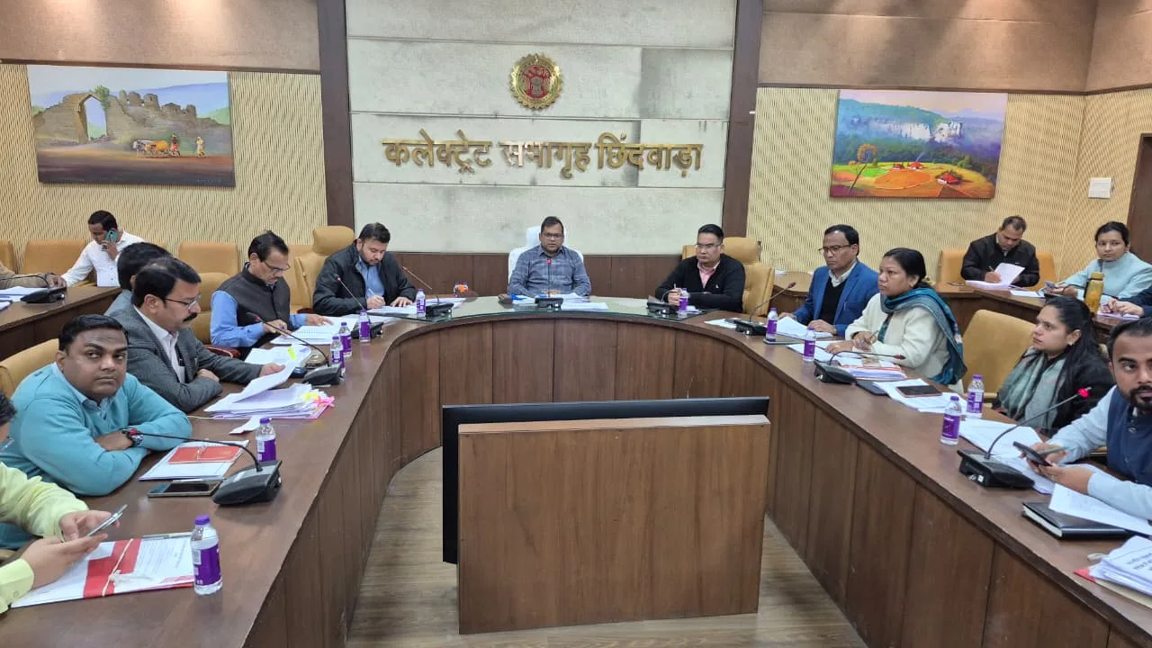 कलेक्टर श्री नारायन ने ली समय-सीमा प्रकरणों की समीक्षा बैठक सतपुड़ा एक्सप्रेस छिन्दवाड़ा/29 दिसंबर 2025/ कलेक्टर हरेंद्र नारायन ने आज कलेक्टर कार्यालय के सभाकक्ष में समय-सीमा प्रकरणों की साप्ताहिक समीक्षा बैठक ली। बैठक में सीईओ जिला पंचायत श्री अग्रिम कुमार और अपर कलेक्टर श्री धीरेन्द्र सिंह सहित जिला प्रशासन एवं विभिन्न विभागों के प्रमुख अधिकारी उपस्थित थे। मुख्यालय के अलावा जिले के सभी एसडीएम एवं विभिन्न विभागों के ब्लॉक स्तरीय अधिकारी वीडियो कॉन्फ्रेंसिंग के माध्यम से बैठक में शामिल थे।