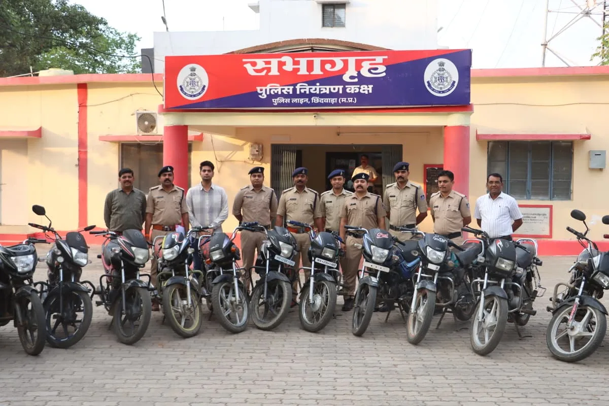 *तीनो के द्वारा बैतूल, छिन्दवाडा, अमरावती, नागपुर, वर्धा, से कुल अभी तक 19 मोटर सायकल चोरी करना बताया*, जिसमे से दो मोटर सायकल विजय अहाके को बेचना बताया गया, पुलिस टीम के द्वारा शेख नसीम, संदेश धुर्वे, आकाश झोड एवं विजय आहके के कब्जे से कुल 19 मोटर सायकल अलग अलग स्थानो जहां आरोपीयो के द्वारा छिपाकर रखा गया था, से जप्त की गई है।