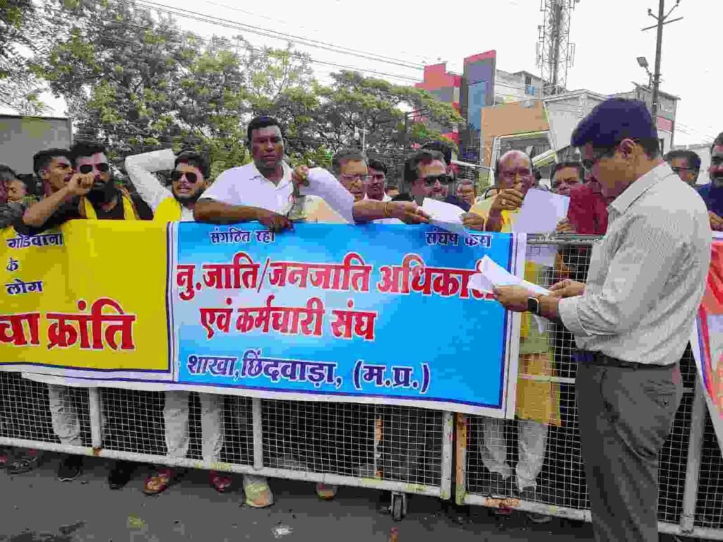 सतपुड़ा एक्सप्रेस छिंदवाड़ा। कर्मचारी संयुक्त मोर्चे के जिला अध्यक्ष सतीश गोंडाने एव अजाक्स संघ छिंदवाड़ा के जिला अध्यक्ष एसबी इवनाती द्वारा बताया गया कि दिनांक 27 जून को श्री मरकाम सहायक आयुक्त जनजाति कार्य विभाग छिंदवाड़ा के साथ कार्यालय में अधीनस्थ कर्मचारियों के द्वारा की गई घटना के विरोध में आज मध्य प्रदेश अधिकारी कर्मचारी संगठन, अजाक संगठन एवं अन्य सामाजिक संगठनों द्वारा ज्ञापन सोपा जाकर दोषियों पर कार्रवाई की मांग की गई । घटना के विरोध में:-1)जिला अजाक्स संघ छिंदवाड़ा के तत्वावधान में लगभग 1 दर्जन से अधिक संगठन जिसमें 2)अधिकारी कर्मचारी संयुक्त मोर्चा 3)आकाश सं1)जिला अजाक्स संघ छिंदवाड़ा के तत्वावधान में लगभग 1 दर्जन से अधिक संगठन जिसमें 2)अधिकारी कर्मचारी संयुक्त मोर्चा 3)आकाश संगठन4) गोंडवाना समाज संगठन 5)गोंड समाज महासभा संगठन 6)हॉस्टल अधीक्षक संगठन 7) गोंडवाना छात्र संगठन 8) राष्ट्रीय आदिवासी विकास परिषद9) मध्य प्रदेश आदिवासी विकास परिषद 10)राष्ट्रीय जन क्रांतिकारी मोर्चा के 11) बामसेफ 12) मध्य प्रदेश शिक्षक संघ13) मध्य प्रदेश लिपिक वर्ग संघ के पदाधिकारियों के साथ अन्य सभी अधिकारी कर्मचारी एवं सामाजिक संगठनों के सभी पदाधिकारी बड़ी मात्रा में उपस्थित होकर दिनांक 27 जून 2023 को श्री सत्येंद्र सिंह मरकाम सहायक आयुक्त जनजाति कार्य एवं विकास विभाग छिंदवाड़ा के कार्यालय में उपस्थित होकर महिला हॉस्टल अधीक्षक द्वारा जो अभद्र व्यवहार किया गया उसकी सभी संगठनों ने घोर निंदा की है एवं कलेक्टर छिंदवाड़ा के माध्यम से महामहिम राज्यपाल तथा माननीय मुख्यमंत्री जी के नाम ज्ञापन सौंपा दोषी महिला के खिलाफ एट्रोसिटी एक्ट लगाकर तत्काल गिरफ्तारी करके सेवा से बर्खास्त करने सहित 9 बिंदुओं का ज्ञापन सौंपा इस प्रकार कार्यक्रम को सफल बनाने हेतु सभी संगठनों दिनांक 27/06/2023 को श्रीमति प्रमिला यादव (साहू) अधीक्षक अनुसूचित जाति सीनियर कन्यात छात्रावास अमरवाडा के पास 02 छात्रावासों के प्रभार थे जिसमें से एक छात्रावास का प्रभार नवीन अधीक्षिका श्रीमति ज्योीति बडघरे को आदिवासी पोष्टा मेट्रिक कन्याा छात्रावास अमरवाडा का प्रभार सौपने हेतु निर्देशित किया जा रहा था । जिससे आक्रोशित होकर चार्ज देने से माना करते हुये। चप्प्ल उतार कर मारने का प्रयास करते हुये अभद्र व्यवहार एवं जाति सूचक शब्दों का प्रयोग करते हुए गाली गलोच किया गया, उस समय मंडल सयोजक श्रीमति रजनी अगामे उपस्थित थी।
