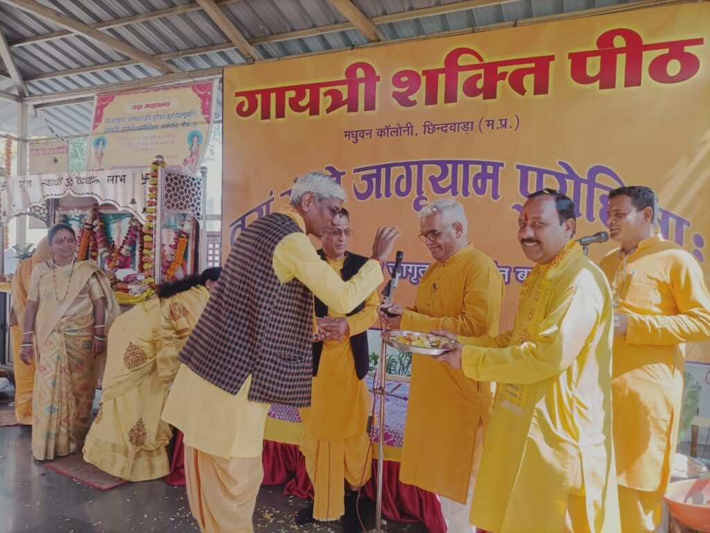 सतपुड़ा एक्सप्रेस छिंदवाड़ा : अखिल विश्व गायत्री परिवार शांतिकुंज हरिद्वार के संरक्षण में गायत्री शक्तिपीठ मधुवन कालोनी छिंदवाड़ा में 5 कुंडीय गायत्री महायज्ञ प्रातः10 बजे कार्यक्रम का संचालन श्रीमती नंदनी अड़लक, श्रीमती कैकई पहाड़े, श्रीमती संध्या अड़लक की टोली द्वारा संपन्न हुआ। बसंत पंचमी पर परम पूज्य गुरुदेव का अध्यात्मिक जन्मदिन के रूप में मनाया जाता है सभी ने यज्ञ नारायण भगवान को आहुतियां समर्पित कर विश्व कल्याण की कामना से आहुतियां समर्पित किया गया।